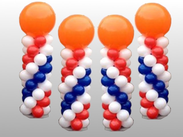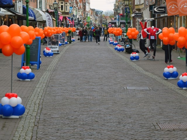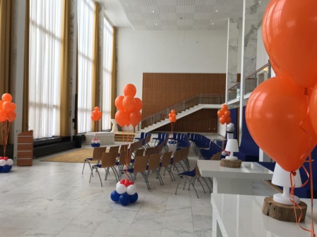 - Heliumboeketten in oranje en rood-wit-blauw.